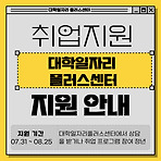 고용노동부 누리집 바로가기 대학일자리플러스센터는 전문 상담사와 함께하는 1:1 진로·취업상담을 비롯해 자기소개서, 면접 컨설팅, 취업역량 프로그램, 지역산업 특화교육 등 다양한 프로그램을 제공하고 있습니다. 진로·취업 준비 지원이 필요한 청년이라면 누구나 이용할 수 있습니다. Q. 대학일자리플러스센터란? 고용노동부, 지자체, 대학이 협력하여 청년에게 진로·취업 상담과 취업 준비를 원스톱으로 제공하는 사업입니다. Q. 어떠한 프로그램을 제공하고 있나요? · 상담 - 전문 상담사와 함께하는 1:1 진로 · 취업상담 · 취업지원 - 자기소개서·면접 컨설팅, 반도체·Al 등 취업역량 프로그램, 지역산업(뷰티, 가구, 관광 등) 특화 교육 등 ※ 대학일자리플러스센터 별로 제공하는 프로그램은 다를 수 있습니다. Q..
