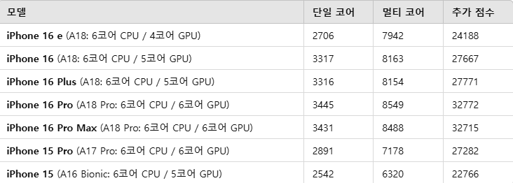 4. 아이폰 모델별 벤치마크