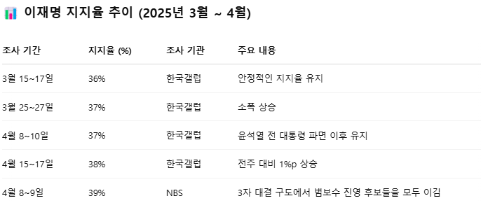 이재명 지지율 현황 (2025년 4월 기준)