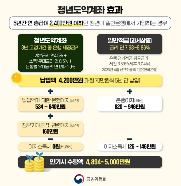 - 청년도약계좌: 동일 이자 발생 시 세금 ‘0원’