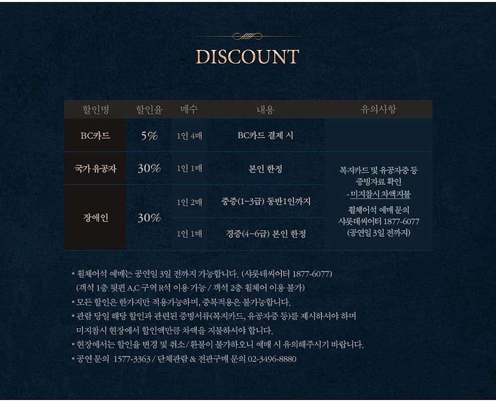- 할인율 : BC카드 5% (BC카드 결제 시, 1인 4매)