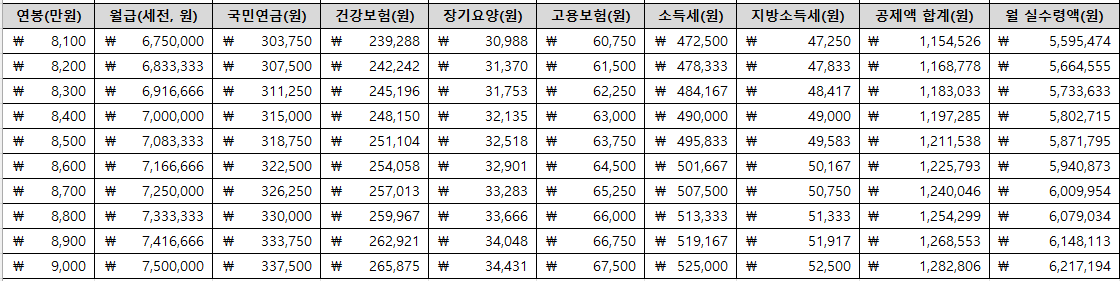 이번 글에서는 2025년 기준으로 연봉 3,000만원부터 9,000만원까지 구간별 실수령액을 표로 정리해보겠습니다.